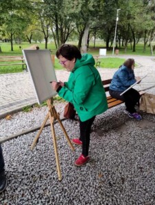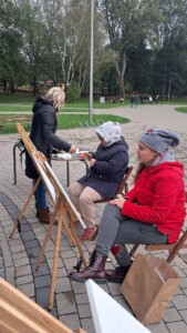 W pochmurny a potem deszczowy, chłodny piątek uczestnicy XIII Czeladzkich Spotkań Plenerowych Osób Niepełnosprawnych tworzyli barwne plastyczne opowieści podczas wydarzenia w parku Grabek. Przed zamarznięciem uratowała nas restauracja „przy muszli „pana Horynia, gdzie czekały na uczestników ciepłe napoje i płonący kominek. I tak w piątkowe przedpołudnie lokal gastronomiczny zamienił się w klimatyczną pracownię malarską. W plenerach wzięły udział ośrodki pomocowe z Czeladzi, Będzina, Dąbrowy Górniczej i Sosnowca a motywem wiodącym była ekologia. Wydarzenie współfinansowane przez Urząd Miasta Czeladzi oraz Stowarzyszenie „Familia „.