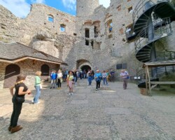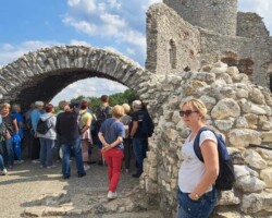 Nasz szlak prowadził nas dalej, aż do Ogrodzieńca, gdzie czekał na nas imponujący zamek Bonerów, stanowiący główną atrakcję tego miasta. Szczęśliwie aura była łaskawa, co pozwoliło nam cieszyć się cudownymi widokami zamku.Ostatnie godziny naszej wycieczki to wizyta w MOK Ogrodzieniec, gdzie przeszliśmy do krainy śpiewu i muzyki. To była prawdziwa uczta dla zmysłów, jak w piosence „Cała sala śpiewa”.